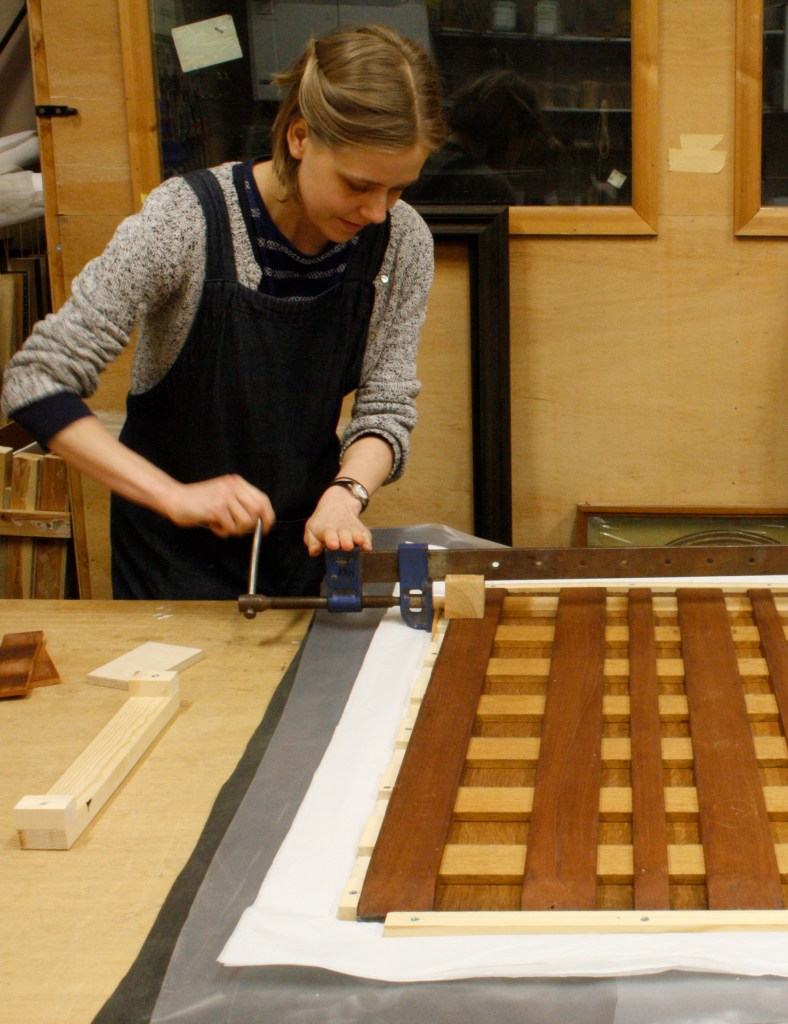 Raised cracks and flaking paint can quickly result in paint loss if left untreated. Consolidating vulnerable areas of paint with an appropriate adhesive can stabilise the paint layers, preventing or postponing the loss of paint.